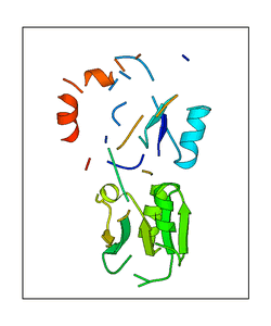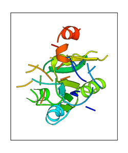 These views are prepared from three orthologuous viewpoints with MolScript. Secondary structures are determined from the C-alpha atom positions of your protein (N-terminal blue, C-terminal red).