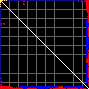 This matrix displays the maximum distance fluctuations between all pairs of CA atoms and between the two extreme conformations that were computed for this mode (DQMIN/DQMAX). Distance increases are plotted in blue and decreases in red for the strongest 10% of the residue pair distance changes. Every pixel corresponds to a single residue. Grey lines are drawn every 10 residues, yellow lines every 100 residues (counting from the upper left corner).
