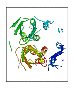 CAUTION: The amplitude range presented in these views corresponds to the highest (DQMAX) and lowest (DQMIN) perturbations chosen for this mode. Secondary structures can break down (and thus disappear from the animation) if the applied amplitudes are too large for Molscript to identify them. The choice of the amplitude is not a NMA result, but has to be done by the user on physical grounds. To change the amplitude range, you can recompute the animation of the desired mode by using the "Compute additional perturbed models with elNémo" section on the results page of your job.