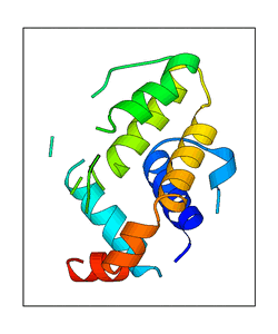 These views are prepared from three orthologuous viewpoints with MolScript. Secondary structures are determined from the C-alpha atom positions of your protein (N-terminal blue, C-terminal red).