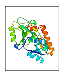 These views are prepared from three orthologuous viewpoints with MolScript. Secondary structures are determined from the C-alpha atom positions of your protein (N-terminal blue, C-terminal red).