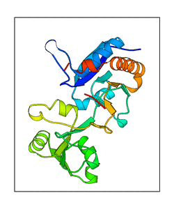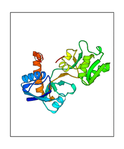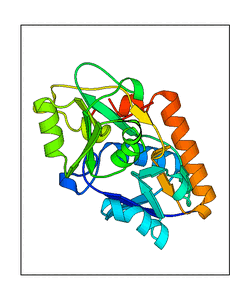 These views are prepared from three orthologuous viewpoints with MolScript. Secondary structures are determined from the C-alpha atom positions of your protein (N-terminal blue, C-terminal red).