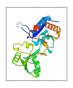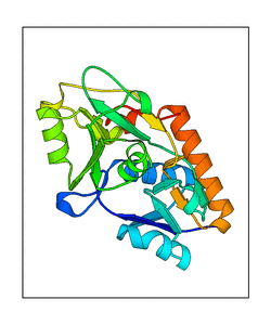 These views are prepared from three orthologuous viewpoints with MolScript. Secondary structures are determined from the C-alpha atom positions of your protein (N-terminal blue, C-terminal red).