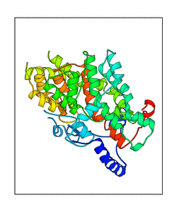 These views are prepared from three orthologuous viewpoints with MolScript. Secondary structures are determined from the C-alpha atom positions of your protein (N-terminal blue, C-terminal red).