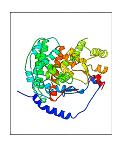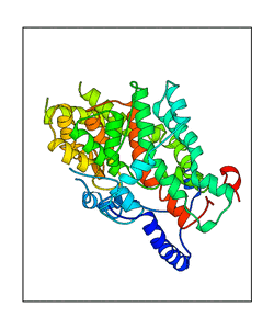 These views are prepared from three orthologuous viewpoints with MolScript. Secondary structures are determined from the C-alpha atom positions of your protein (N-terminal blue, C-terminal red).