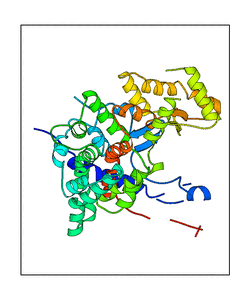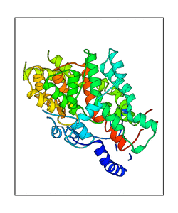 These views are prepared from three orthologuous viewpoints with MolScript. Secondary structures are determined from the C-alpha atom positions of your protein (N-terminal blue, C-terminal red).