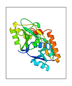 These views are prepared from three orthologuous viewpoints with MolScript. Secondary structures are determined from the C-alpha atom positions of your protein (N-terminal blue, C-terminal red).