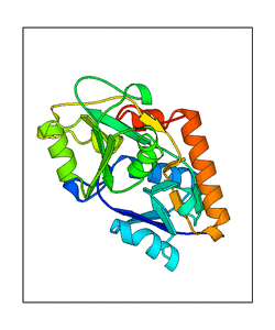 These views are prepared from three orthologuous viewpoints with MolScript. Secondary structures are determined from the C-alpha atom positions of your protein (N-terminal blue, C-terminal red).