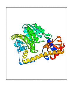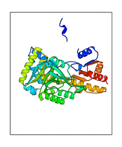 These views are prepared from three orthologuous viewpoints with MolScript. Secondary structures are determined from the C-alpha atom positions of your protein (N-terminal blue, C-terminal red).
