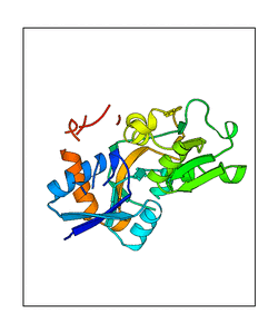 These views are prepared from three orthologuous viewpoints with MolScript. Secondary structures are determined from the C-alpha atom positions of your protein (N-terminal blue, C-terminal red).