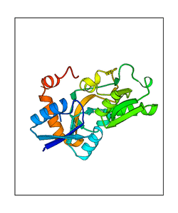 These views are prepared from three orthologuous viewpoints with MolScript. Secondary structures are determined from the C-alpha atom positions of your protein (N-terminal blue, C-terminal red).