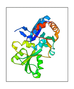 These views are prepared from three orthologuous viewpoints with MolScript. Secondary structures are determined from the C-alpha atom positions of your protein (N-terminal blue, C-terminal red).