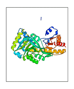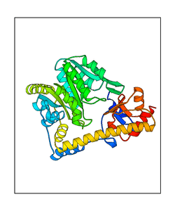 These views are prepared from three orthologuous viewpoints with MolScript. Secondary structures are determined from the C-alpha atom positions of your protein (N-terminal blue, C-terminal red).