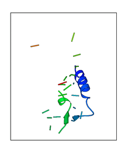 CAUTION: The amplitude range presented in these views corresponds to the highest (DQMAX) and lowest (DQMIN) perturbations chosen for this mode. Secondary structures can break down (and thus disappear from the animation) if the applied amplitudes are too large for Molscript to identify them. The choice of the amplitude is not a NMA result, but has to be done by the user on physical grounds. To change the amplitude range, you can recompute the animation of the desired mode by using the "Compute additional perturbed models with elNémo" section on the results page of your job.