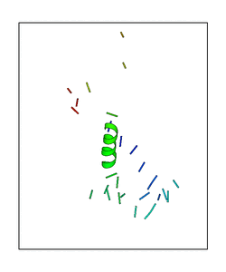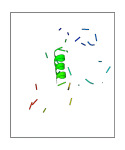 CAUTION: The amplitude range presented in these views corresponds to the highest (DQMAX) and lowest (DQMIN) perturbations chosen for this mode. Secondary structures can break down (and thus disappear from the animation) if the applied amplitudes are too large for Molscript to identify them. The choice of the amplitude is not a NMA result, but has to be done by the user on physical grounds. To change the amplitude range, you can recompute the animation of the desired mode by using the "Compute additional perturbed models with elNémo" section on the results page of your job.