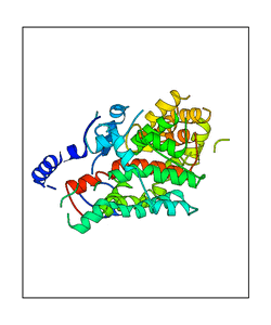 These views are prepared from three orthologuous viewpoints with MolScript. Secondary structures are determined from the C-alpha atom positions of your protein (N-terminal blue, C-terminal red).