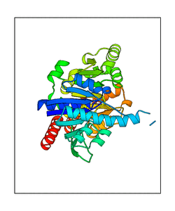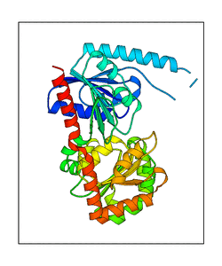 These views are prepared from three orthologuous viewpoints with MolScript. Secondary structures are determined from the C-alpha atom positions of your protein (N-terminal blue, C-terminal red).
