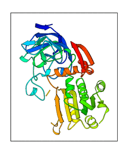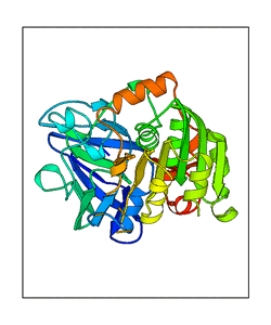 These views are prepared from three orthologuous viewpoints with MolScript. Secondary structures are determined from the C-alpha atom positions of your protein (N-terminal blue, C-terminal red).