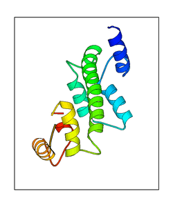 These views are prepared from three orthologuous viewpoints with MolScript. Secondary structures are determined from the C-alpha atom positions of your protein (N-terminal blue, C-terminal red).