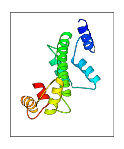 These views are prepared from three orthologuous viewpoints with MolScript. Secondary structures are determined from the C-alpha atom positions of your protein (N-terminal blue, C-terminal red).