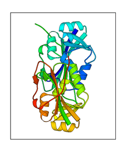 These views are prepared from three orthologuous viewpoints with MolScript. Secondary structures are determined from the C-alpha atom positions of your protein (N-terminal blue, C-terminal red).
