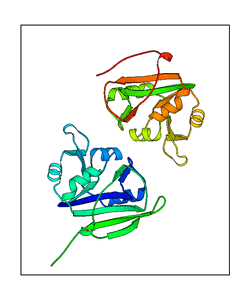 CAUTION: The amplitude range presented in these views corresponds to the highest (DQMAX) and lowest (DQMIN) perturbations chosen for this mode. Secondary structures can break down (and thus disappear from the animation) if the applied amplitudes are too large for Molscript to identify them. The choice of the amplitude is not a NMA result, but has to be done by the user on physical grounds. To change the amplitude range, you can recompute the animation of the desired mode by using the "Compute additional perturbed models with elNémo" section on the results page of your job.