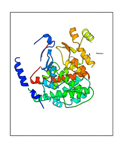 These views are prepared from three orthologuous viewpoints with MolScript. Secondary structures are determined from the C-alpha atom positions of your protein (N-terminal blue, C-terminal red).