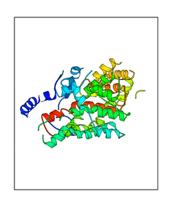These views are prepared from three orthologuous viewpoints with MolScript. Secondary structures are determined from the C-alpha atom positions of your protein (N-terminal blue, C-terminal red).