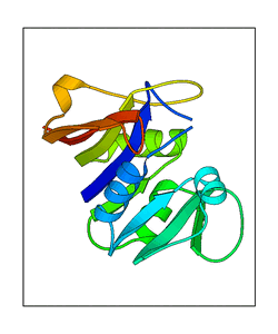 These views are prepared from three orthologuous viewpoints with MolScript. Secondary structures are determined from the C-alpha atom positions of your protein (N-terminal blue, C-terminal red).