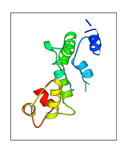 These views are prepared from three orthologuous viewpoints with MolScript. Secondary structures are determined from the C-alpha atom positions of your protein (N-terminal blue, C-terminal red).
