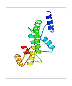 These views are prepared from three orthologuous viewpoints with MolScript. Secondary structures are determined from the C-alpha atom positions of your protein (N-terminal blue, C-terminal red).