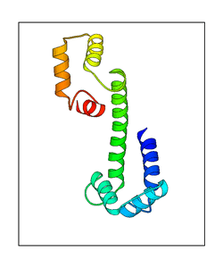 These views are prepared from three orthologuous viewpoints with MolScript. Secondary structures are determined from the C-alpha atom positions of your protein (N-terminal blue, C-terminal red).