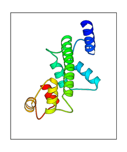 These views are prepared from three orthologuous viewpoints with MolScript. Secondary structures are determined from the C-alpha atom positions of your protein (N-terminal blue, C-terminal red).