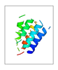 These views are prepared from three orthologuous viewpoints with MolScript. Secondary structures are determined from the C-alpha atom positions of your protein (N-terminal blue, C-terminal red).