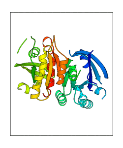 These views are prepared from three orthologuous viewpoints with MolScript. Secondary structures are determined from the C-alpha atom positions of your protein (N-terminal blue, C-terminal red).