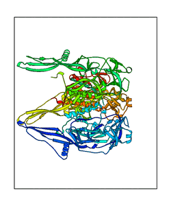 CAUTION: The amplitude range presented in these views corresponds to the highest (DQMAX) and lowest (DQMIN) perturbations chosen for this mode. Secondary structures can break down (and thus disappear from the animation) if the applied amplitudes are too large for Molscript to identify them. The choice of the amplitude is not a NMA result, but has to be done by the user on physical grounds. To change the amplitude range, you can recompute the animation of the desired mode by using the "Compute additional perturbed models with elNémo" section on the results page of your job.