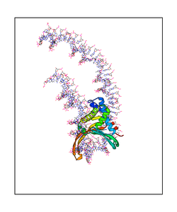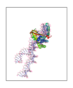 CAUTION: The amplitude range presented in these views corresponds to the highest (DQMAX) and lowest (DQMIN) perturbations chosen for this mode. Secondary structures can break down (and thus disappear from the animation) if the applied amplitudes are too large for Molscript to identify them. The choice of the amplitude is not a NMA result, but has to be done by the user on physical grounds. To change the amplitude range, you can recompute the animation of the desired mode by using the "Compute additional perturbed models with elNémo" section on the results page of your job.