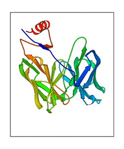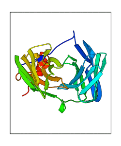These views are prepared from three orthologuous viewpoints with MolScript. Secondary structures are determined from the C-alpha atom positions of your protein (N-terminal blue, C-terminal red).
