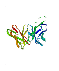 These views are prepared from three orthologuous viewpoints with MolScript. Secondary structures are determined from the C-alpha atom positions of your protein (N-terminal blue, C-terminal red).