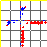 This matrix displays the maximum distance fluctuations between all pairs of CA atoms and between the two extreme conformations that were computed for this mode (DQMIN/DQMAX). Distance increases are plotted in blue and decreases in red for the strongest 10% of the residue pair distance changes. Every pixel corresponds to a single residue. Grey lines are drawn every 10 residues, yellow lines every 100 residues (counting from the upper left corner).