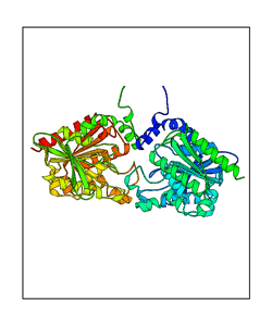 These views are prepared from three orthologuous viewpoints with MolScript. Secondary structures are determined from the C-alpha atom positions of your protein (N-terminal blue, C-terminal red).