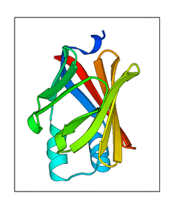 These views are prepared from three orthologuous viewpoints with MolScript. Secondary structures are determined from the C-alpha atom positions of your protein (N-terminal blue, C-terminal red).