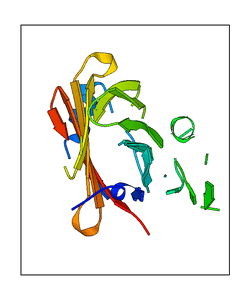 These views are prepared from three orthologuous viewpoints with MolScript. Secondary structures are determined from the C-alpha atom positions of your protein (N-terminal blue, C-terminal red).