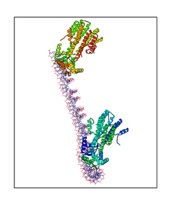 CAUTION: The amplitude range presented in these views corresponds to the highest (DQMAX) and lowest (DQMIN) perturbations chosen for this mode. Secondary structures can break down (and thus disappear from the animation) if the applied amplitudes are too large for Molscript to identify them. The choice of the amplitude is not a NMA result, but has to be done by the user on physical grounds. To change the amplitude range, you can recompute the animation of the desired mode by using the "Compute additional perturbed models with elNémo" section on the results page of your job.