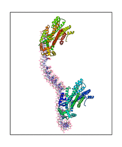 CAUTION: The amplitude range presented in these views corresponds to the highest (DQMAX) and lowest (DQMIN) perturbations chosen for this mode. Secondary structures can break down (and thus disappear from the animation) if the applied amplitudes are too large for Molscript to identify them. The choice of the amplitude is not a NMA result, but has to be done by the user on physical grounds. To change the amplitude range, you can recompute the animation of the desired mode by using the "Compute additional perturbed models with elNémo" section on the results page of your job.