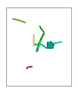 CAUTION: The amplitude range presented in these views corresponds to the highest (DQMAX) and lowest (DQMIN) perturbations chosen for this mode. Secondary structures can break down (and thus disappear from the animation) if the applied amplitudes are too large for Molscript to identify them. The choice of the amplitude is not a NMA result, but has to be done by the user on physical grounds. To change the amplitude range, you can recompute the animation of the desired mode by using the "Compute additional perturbed models with elNémo" section on the results page of your job.