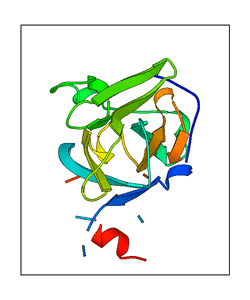 These views are prepared from three orthologuous viewpoints with MolScript. Secondary structures are determined from the C-alpha atom positions of your protein (N-terminal blue, C-terminal red).