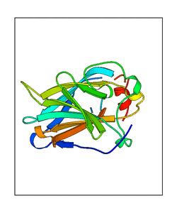 These views are prepared from three orthologuous viewpoints with MolScript. Secondary structures are determined from the C-alpha atom positions of your protein (N-terminal blue, C-terminal red).