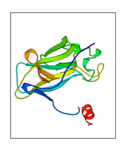 These views are prepared from three orthologuous viewpoints with MolScript. Secondary structures are determined from the C-alpha atom positions of your protein (N-terminal blue, C-terminal red).