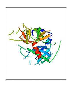 CAUTION: The amplitude range presented in these views corresponds to the highest (DQMAX) and lowest (DQMIN) perturbations chosen for this mode. Secondary structures can break down (and thus disappear from the animation) if the applied amplitudes are too large for Molscript to identify them. The choice of the amplitude is not a NMA result, but has to be done by the user on physical grounds. To change the amplitude range, you can recompute the animation of the desired mode by using the "Compute additional perturbed models with elNémo" section on the results page of your job.